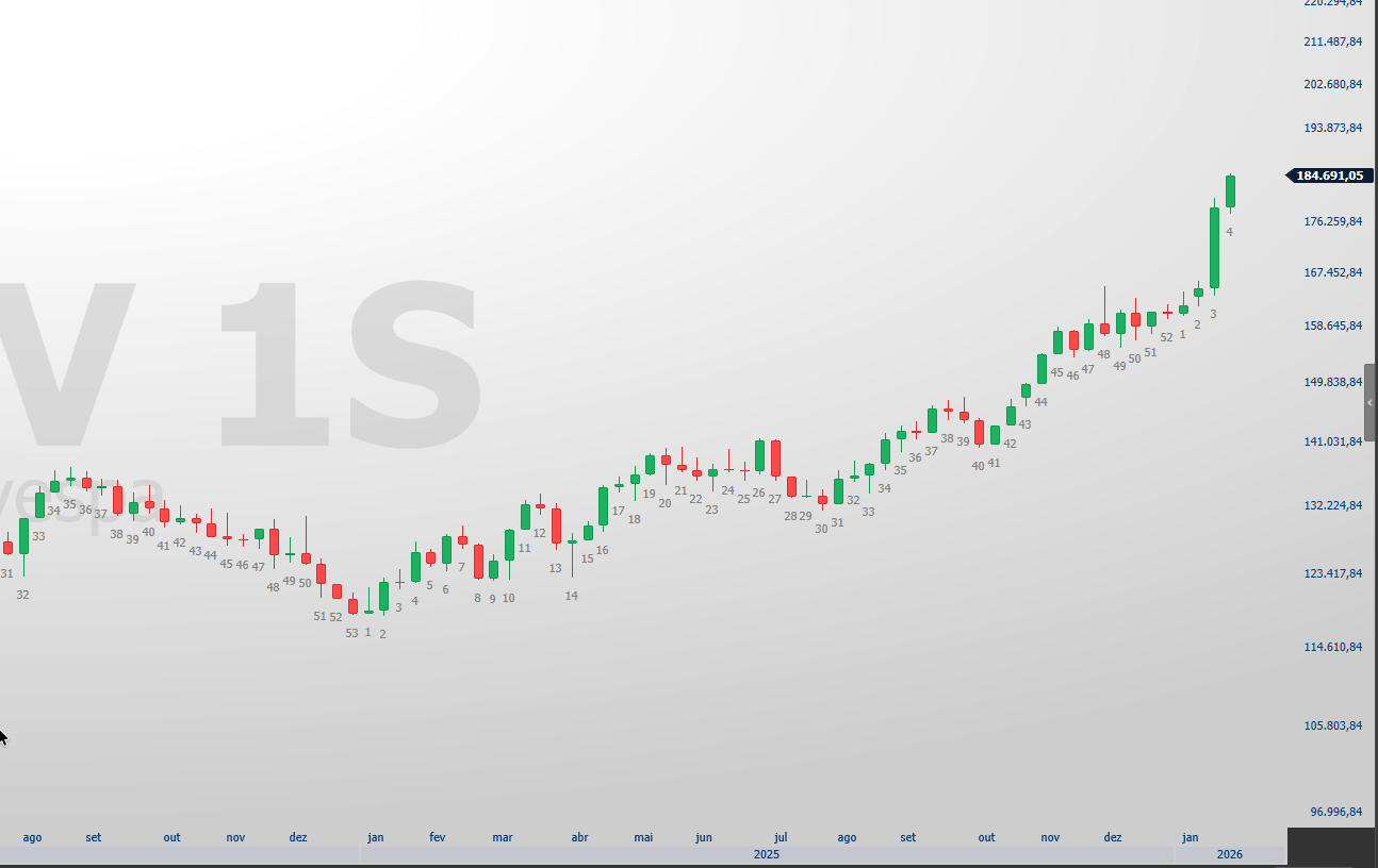[GRÁFICO 4: Ibovespa em timeframe semanal, destacando rompimento de topo histórico]