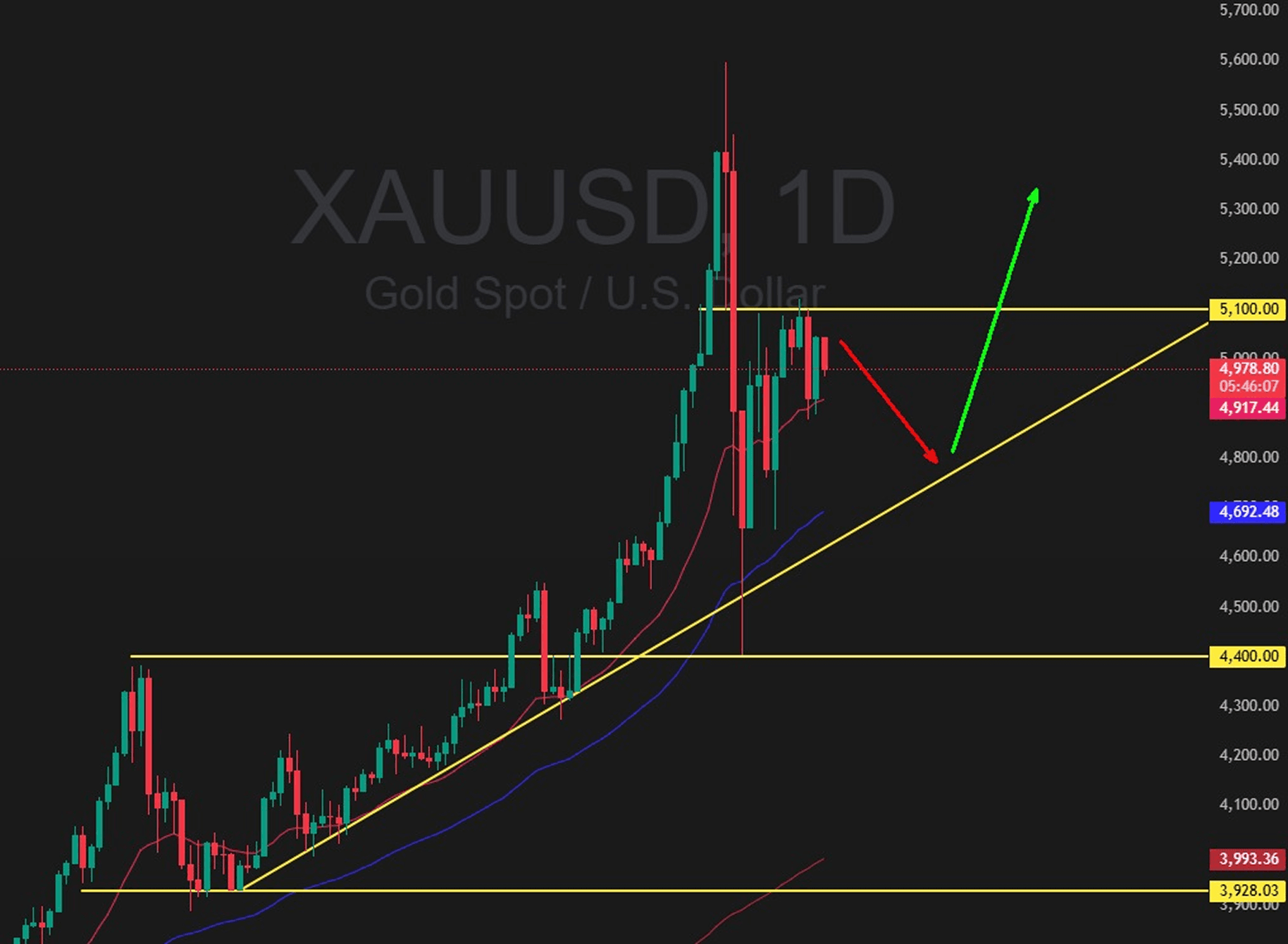 O contrato de ouro (XAU/USD) encontrou resistência forte na região de US$ 5.100 por onça troy, formando um triângulo ascendente. O ativo negocia acima das médias móveis, mantendo tendência primária de alta. O vetor mais relevante, contudo, é macroeconômico: a dinâmica dos conflitos geopolíticos e as decisões do Fed tendem a ditar o ritmo e a intensidade do movimento.
